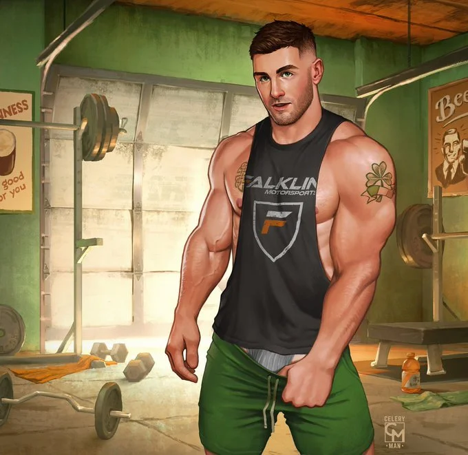 If you desire gorgeous men presented in complex, silly, or tender scenes, with a full story embedded in each piece … then Celery Man is your artist! I have yet to see him release a series of images that is not fully thought-out, presented in an entirely believable scene, and filled with recognizable motifs to draw the viewer into his tales. They are jaw-dropping.